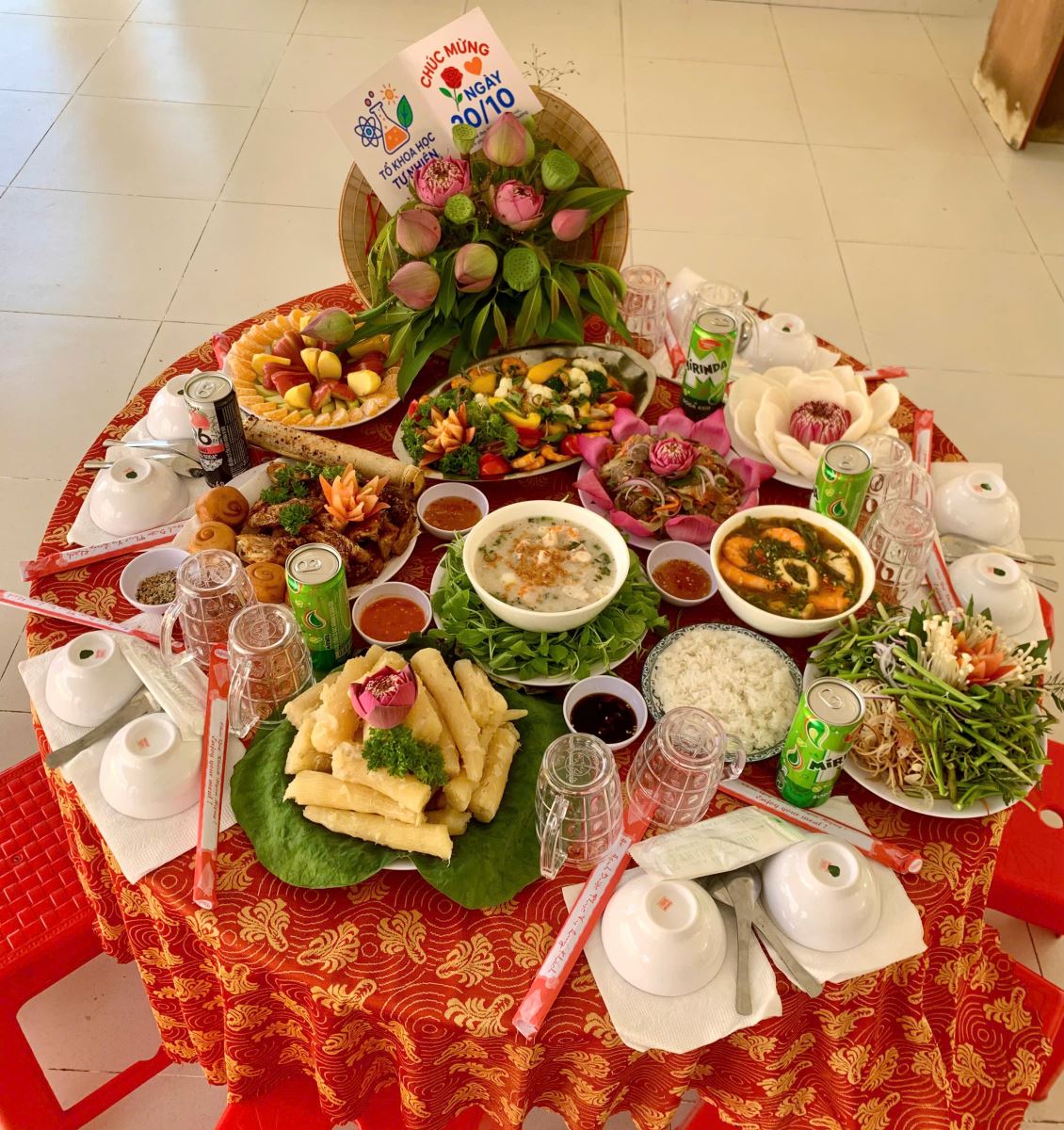 “Mâm cơm hạnh phúc” ở các tổ trong trường là hoạt động ý nghĩa nhằm gắn kết tập thể, lan tỏa yêu thương và tri ân phụ nữ nhân ngày 20/10. Thông qua việc cùng nhau chuẩn bị và chia sẻ bữa ăn, các thầy cô và học sinh thể hiện tình đoàn kết, tinh thần hợp tác và lòng biết ơn đối với các cô giáo, nữ nhân viên – những người luôn tận tâm đóng góp cho nhà trường và học sinh.