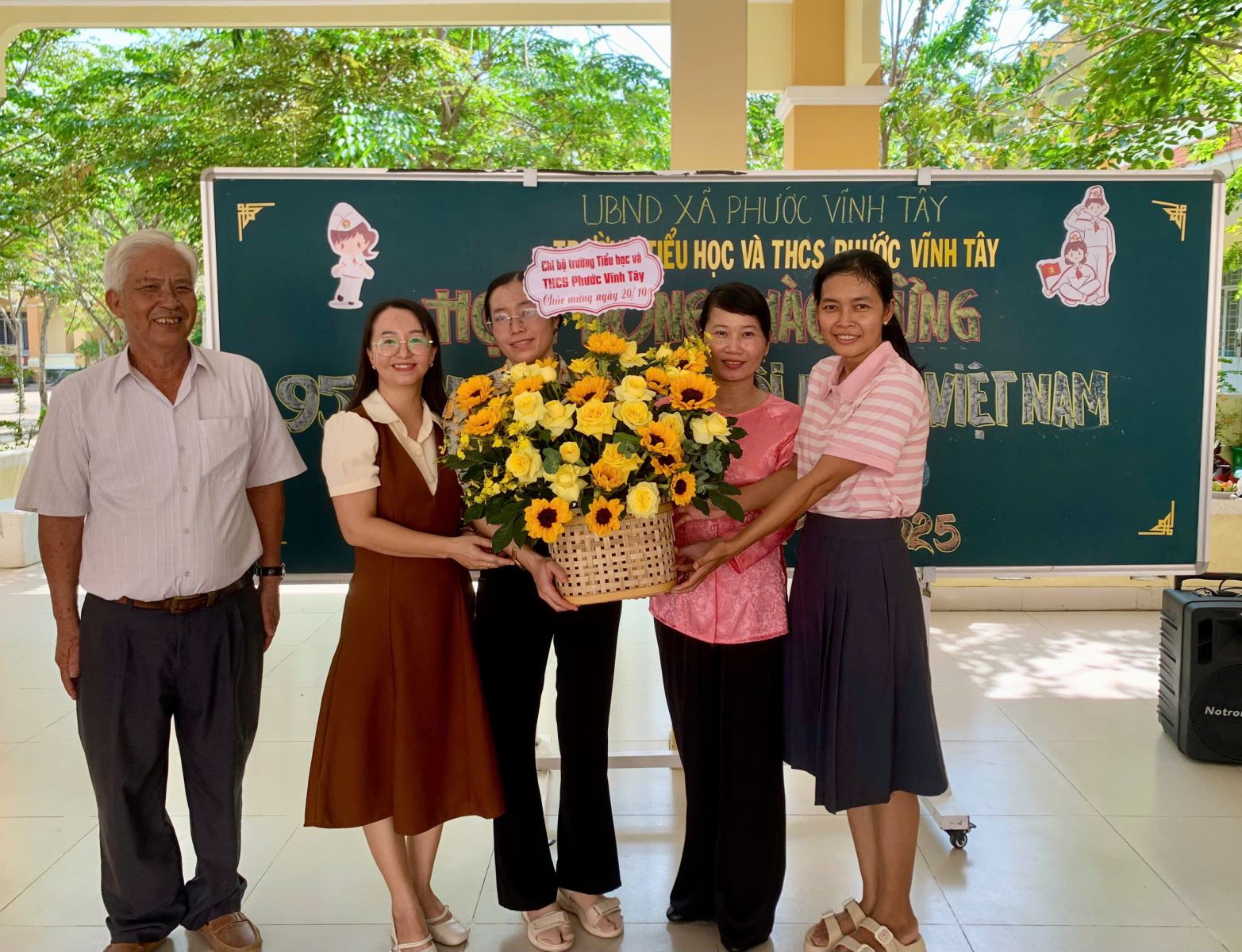 Thầy Hiệu trưởng tặng hoa chúc mừng ngày Phụ nữ Việt Nam 20 tháng 10 năm 2025