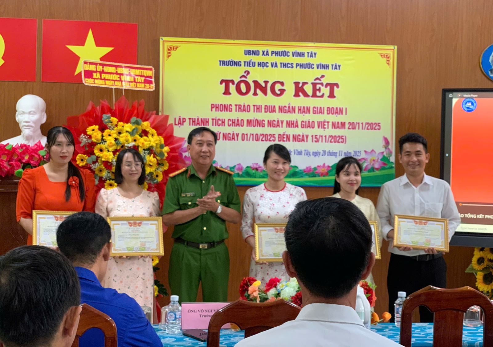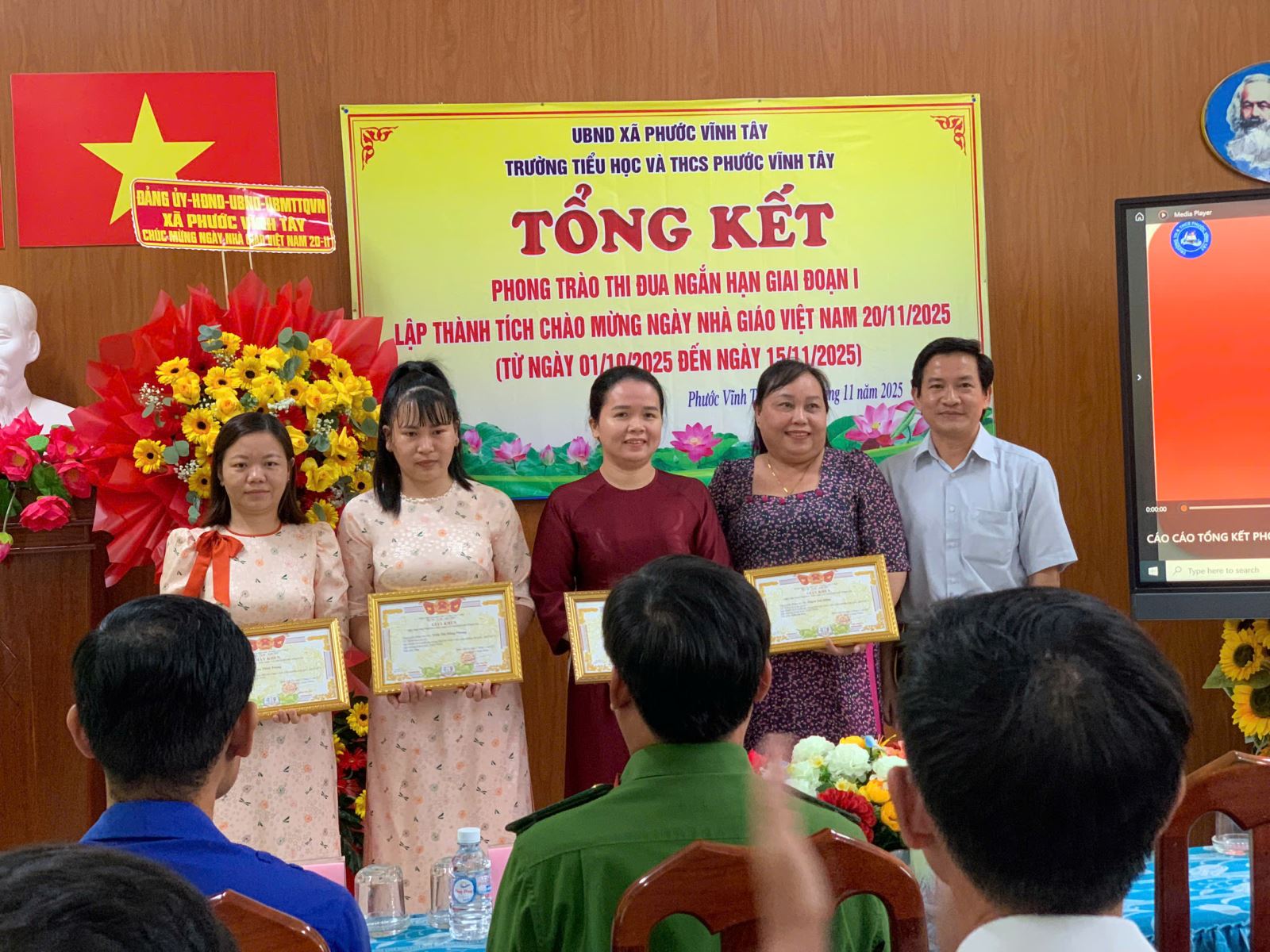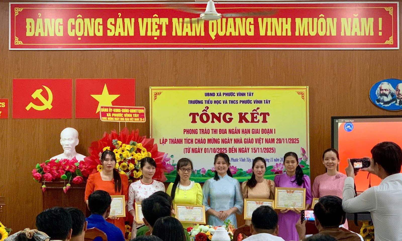 Ngày 20/11/2025, Trường Tiểu học và THCS Phước Vĩnh Tây đã long trọng tổ chức Lễ tổng kết phong trào thi đua giai đoạn I năm học 2025 – 2026 nhằm chào mừng 43 năm Ngày Nhà giáo Việt Nam (20/11/1982 – 20/11/2025).