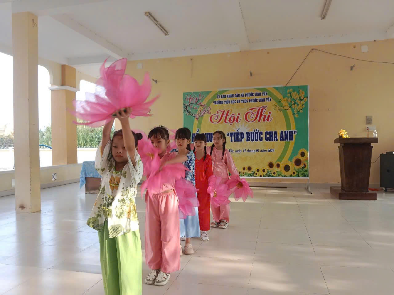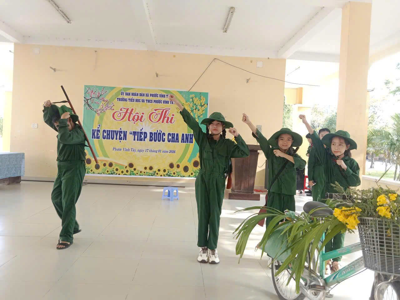 Nhằm giáo dục truyền thống yêu nước, lòng tự hào dân tộc và bồi dưỡng lý tưởng sống cao đẹp cho học sinh, ngày 17/01/2026, Trường Tiểu học và THCS Phước Vĩnh Tây đã long trọng tổ chức Hội thi Kể chuyện với chủ đề “Tiếp bước cha anh”.