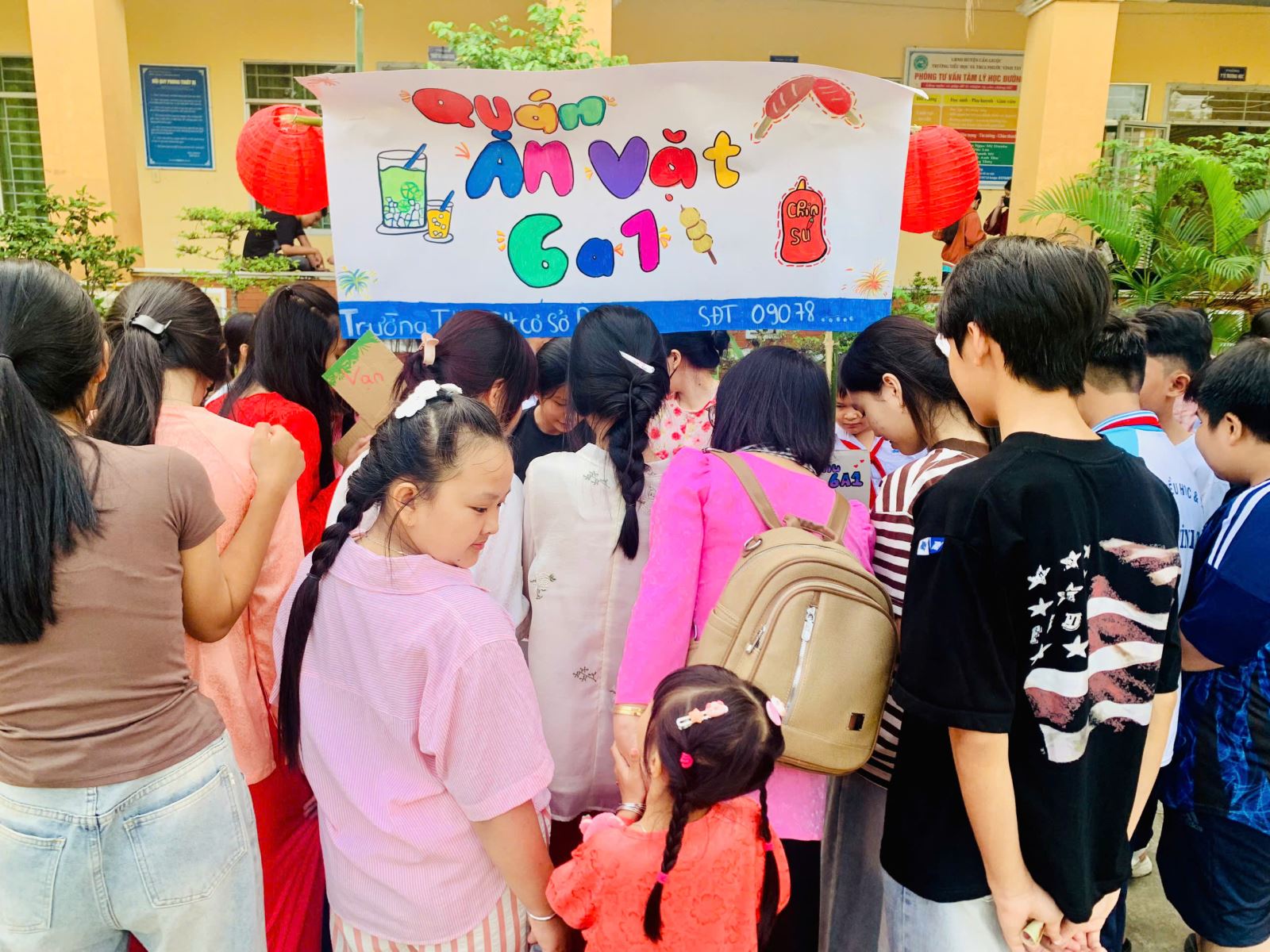 🌼 Các em học sinh hào hứng tham gia trưng bày, giới thiệu các sản phẩm ngày Tết như bánh, mứt, đồ thủ công, đặc sản quê hương.