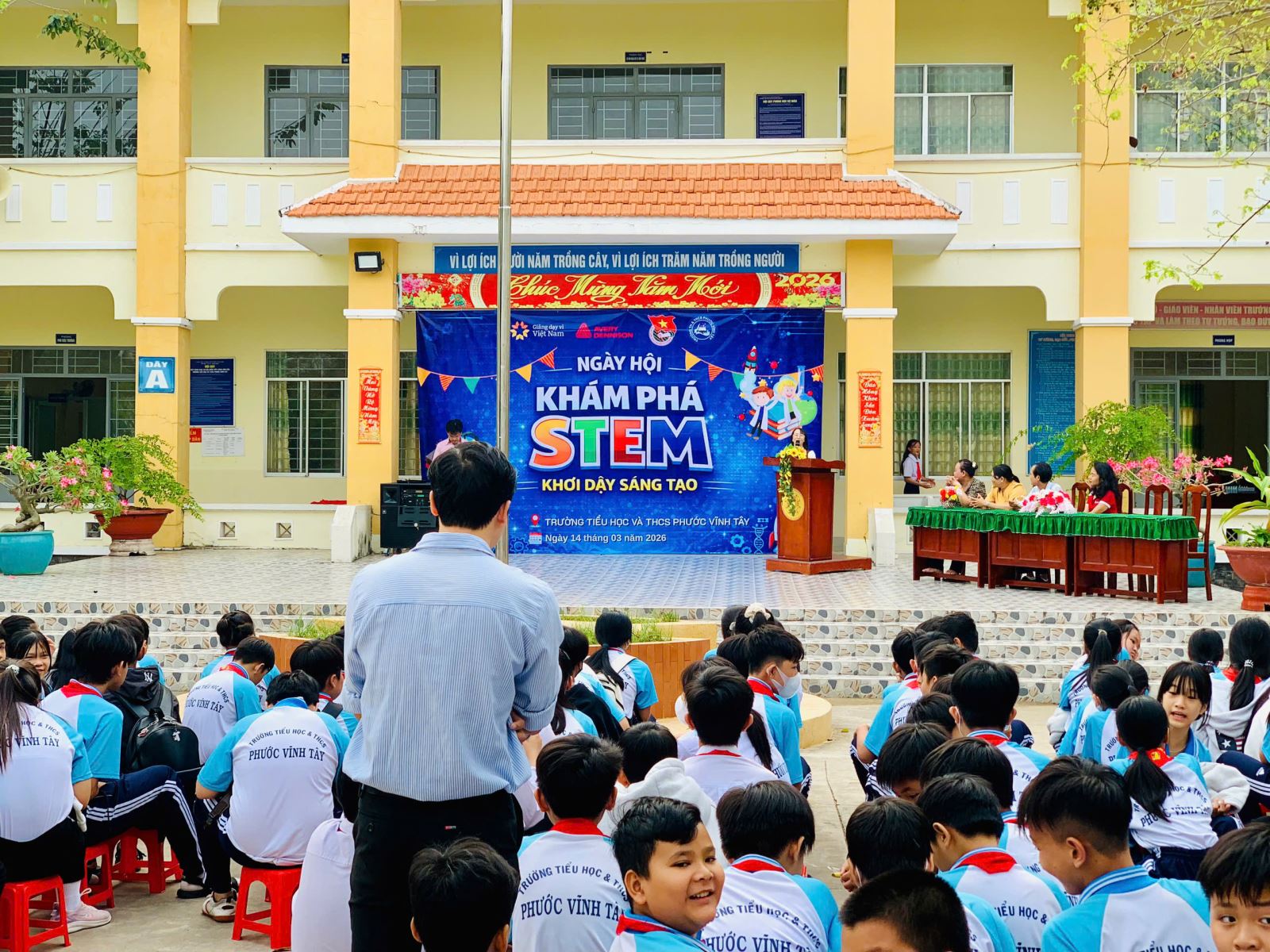 Vào ngày 14 tháng 3 năm 2026, Trường Tiểu học và THCS Phước Vĩnh Tây School đã tổ chức thành công Ngày hội “Khám phá STEM – Khơi dậy sáng tạo” trong không khí sôi nổi, hào hứng và đầy ý nghĩa. Chương trình vinh dự nhận được sự đồng hành, hỗ trợ từ Avery Dennison, góp phần mang đến một sân chơi khoa học bổ ích cho học sinh.