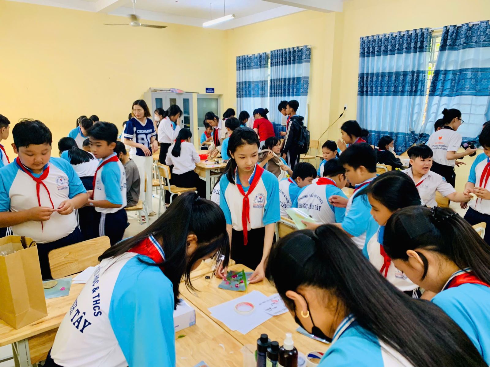 Thông qua việc di chuyển qua các trạm, học sinh không chỉ rèn luyện kỹ năng tư duy, sáng tạo mà còn phát triển khả năng làm việc nhóm, giao tiếp và tính kiên trì. Mỗi sản phẩm hoàn thành là kết quả của quá trình khám phá, thử nghiệm và hợp tác đầy hứng thú của các em.
