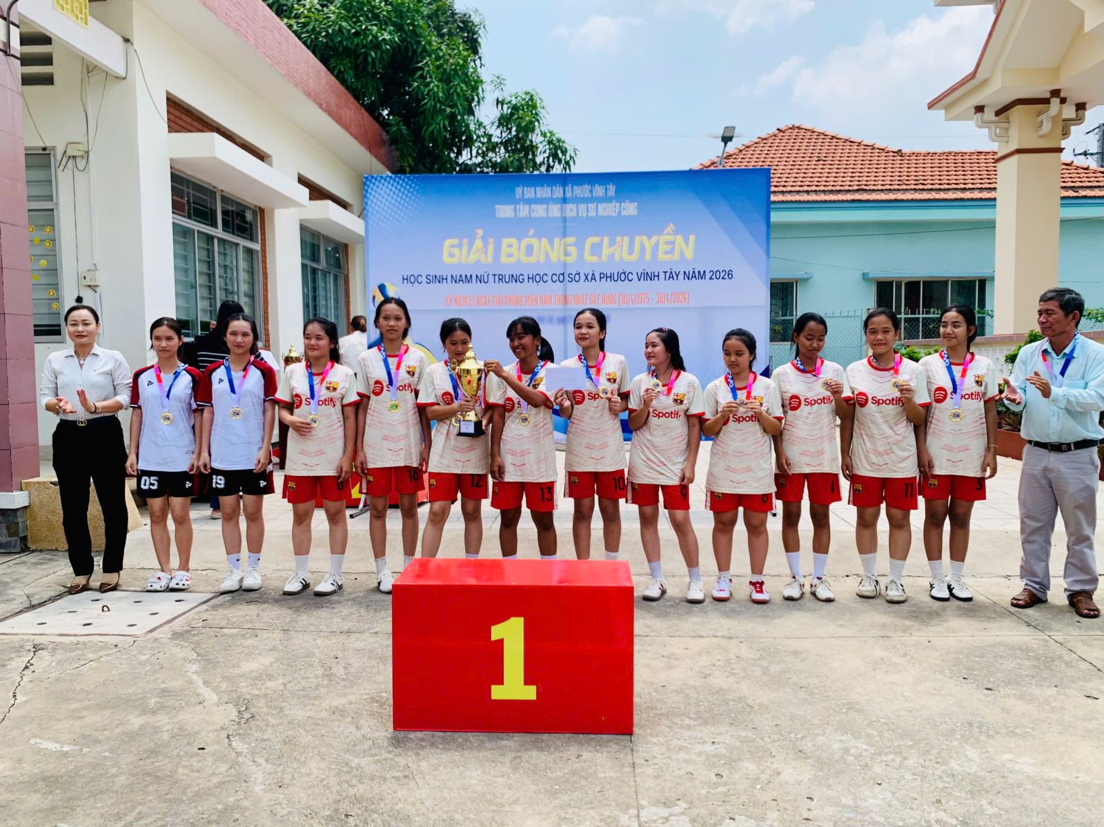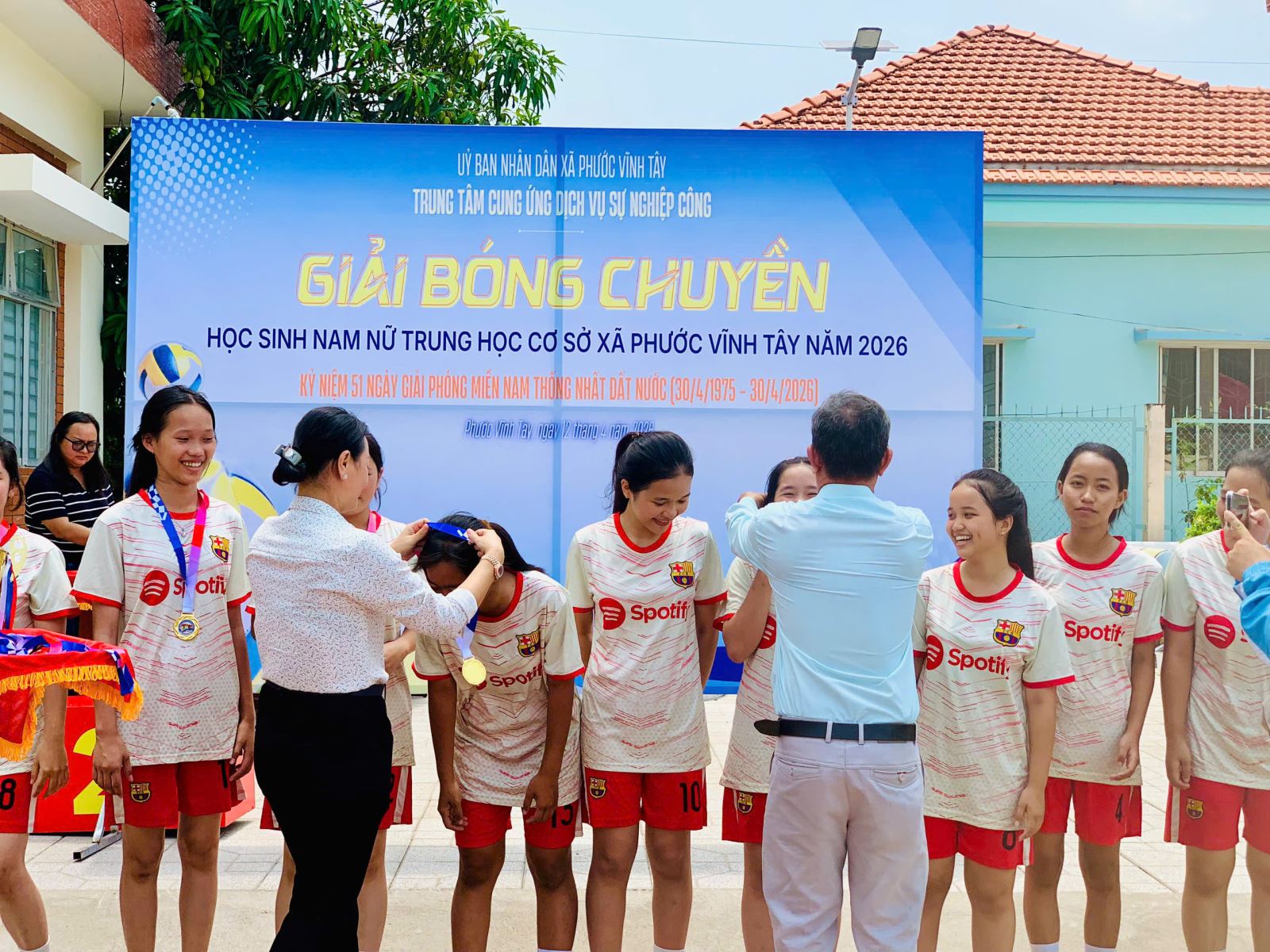 Hưởng ứng kỷ niệm 51 năm Ngày Giải phóng miền Nam, thống nhất đất nước (30/4/1975 – 30/4/2026), học sinh Trường Tiểu học và THCS Phước Vĩnh Tây tham gia Giải bóng chuyền học sinh nam, nữ THCS do Trung tâm Cung ứng dịch vụ sự nghiệp công xã tổ chức.